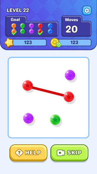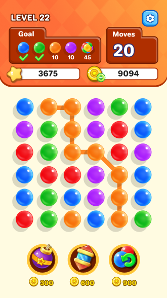This "connect-and-eliminate" mechanic not only tests players' observation skills but also requires strategic planning. For example, in certain levels, players must achieve specific objectives within a limited number of moves, such as collecting a certain number of dots of a particular color, clearing obstacles, or activating hidden power-ups. As a result, every move is crucial and must be carefully weighed in terms of immediate gains versus future board layout possibilities.